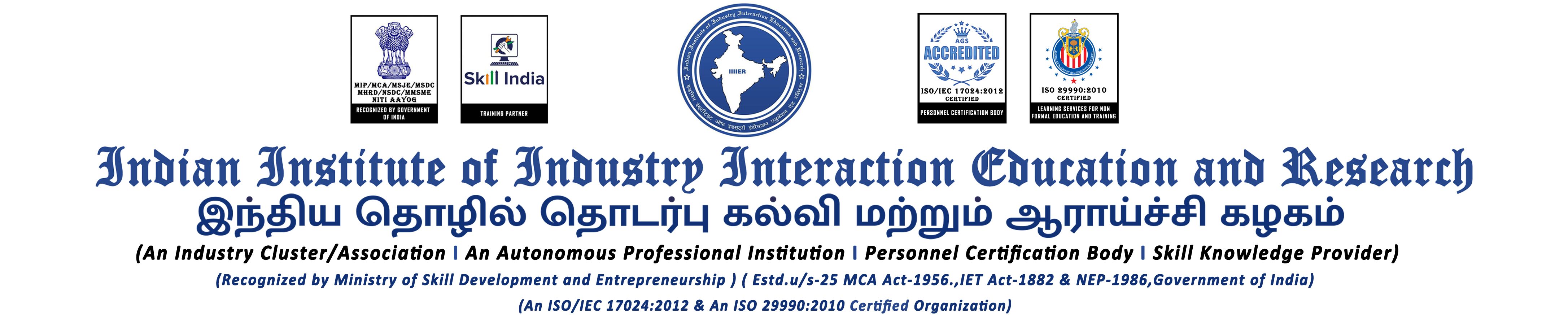 IIIIER helps in learning program by adopting industrial knowledge along with their own skill certification offering qualifications across the value chain of Automotive, manufacturing, sales, and service, safety domains, covering all levels from lower hands skills to high end technical and managerial skills.